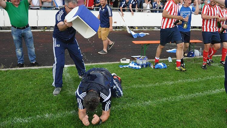 Hallerndorf in die Kreisliga zurück. Mit dem 3:0-Erfolg beim schärfsten Verfolger in Eggolsheim machte die DJK ihr Meisterstück und steigt ins Kreisoberhaus auf. Der InFranken-Kick in Eggolsheim wurde begleitet von Blitz und Donner, die Akteure und die knapp 300 Zuschauer blieben jedoch vom Gewitter weitgehend verschont, da es den Platz nur leicht streifte. Dennoch bereitete der leicht nass gewordene Rasen den Gästen den Weg. Denn beim zweiten Treffer, quasi der Vorentscheidung, rutschte die Murmel SV-Keeper Peter Weber durch die Beine - worauf sich sämtlicher Druck von Hallerndorfs Coach Bernd Renner in einem Freudentaumel von Tränen, Sekt und über ihn geschütteten Wassereimern entlud.