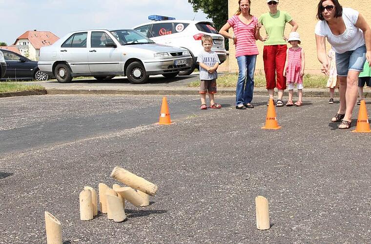 Nach einigen Fehlwürfen resignierte sie: "Da treffen die Kinder ja besser als ich!"