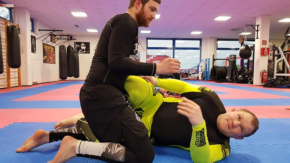 Die Grappling-Gruppe hatte den Mixed-Martial-Arts-Weltmeister Björn Schmiedeberg zu Gast, der das Thema "The Mount" behandelte, also die Reitsitzposition, bei der man sprichwörtlich auf dem Gegner sitzt. Der Referent, der auch den Brazilian-Jiu-Jitsu-Braungurt besitzt und ein versierter Bodenkämpfer ist, erläuterte den Teilnehmern, dass sie sich in dieser Position als Rodeo-Reiter oder Surfer versuchen sollten, um länger oben zu bleiben.