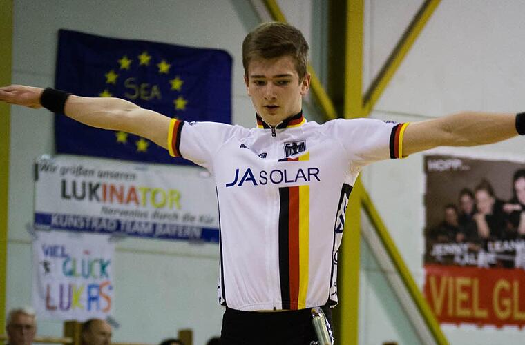 Und eine Ausnahme ist Lukas Kohl sowieso: In Ungarn hatten alle Sportler mit sehr schwierigen Bodenverhältnissen zu kämpfen. "Richtige Löcher waren im sehr alten Parkettboden der Sportstätte", berichtete Trainerin Andrea Kohl. Nach einigen Schwierigkeiten im Training wurde daher beschlossen, den Lenkerhandstand, den Kohl in Form eines "S" fährt, vom Punktwert zu reduzieren und nur in der Runde zu zeigen, um die Gefahr eines Sturzes zu verringern. Und dieses Konzept ging auf. Mit nur wenigen Abzügen und einem kurzen Wackler beim Handstand zeigte er eine beeindruckende Kür. Über 20 Punkte Vorsprung auf Marcel Jüngling, der die Bodenverhältnisse nicht so gut in den Griff bekam, zeigten die Dominanz von Kohl in dieser Disziplin.