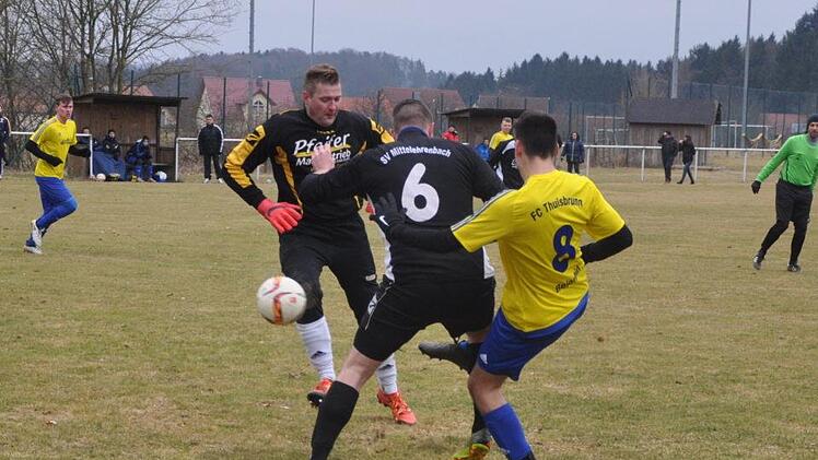 Die Ausgangslage beim "inFranken-Kick" aus der A-Klasse 3 zwischen dem FC Thuisbrunn und dem SV Mittelehrenbach war klar: Der Sieger rückt näher an die Tabellenspitze heran, der Verlierer muss erst seine Wunden lecken und auf die anderen Ergebnisse schielen. Während der FC seine blendende Frühform mit dem 7:0-Kantersieg gegen Stöckach in der Vorwoche unterstrich und bis auf drei Zähler an Reuth und Gräfenberg herankam, konnten die Gäste kein einziges Vorbereitungsspiel austragen und gingen quasi jungfräulich in die Partie.