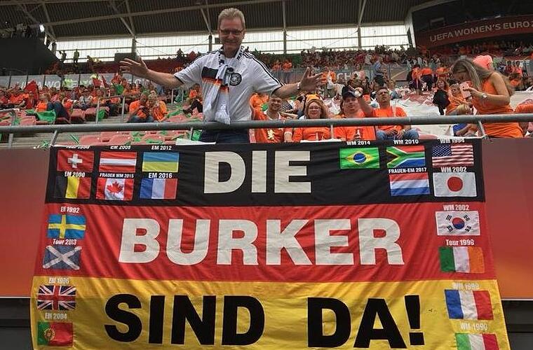 Die Burker Fahne, seit vielen Jahren ein treuer Begleiter, wird dann in keinem Stadionrund zu sehen sein, weder in Doha noch in St. Petersburg. Fest im Blick hat Kainer dagegen die in zwei Jahren stattfindende Frauen-WM in Frankreich. "Darauf freuen wir uns schon jetzt. Bei den Frauen ist zwar alles kleiner, letztlich aber auch ehrlicher und authentischer", sagt Kainer und verweist auf die Begegnung mit drei englischen Nationalspielerinnen in einer Hotellobby in Utrecht: Die blieben für einen kurzen Plausch gerne stehen und nahmen für ein Erinnerungsfoto sogar die schwarz-rot-goldene Burk-Fahne in die Hand.
