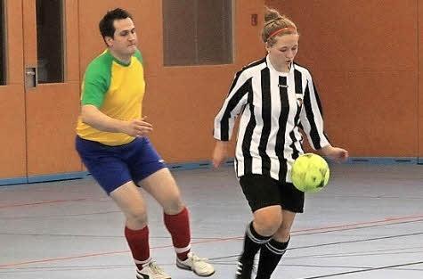 Mit Gunselmann zwischen den Pfosten bot das Promi-Team Paroli. Da halfen auch die Anfeuerungsrufe der Zuschauer für die Damen in der voll besetzten Schulturnhalle nichts.