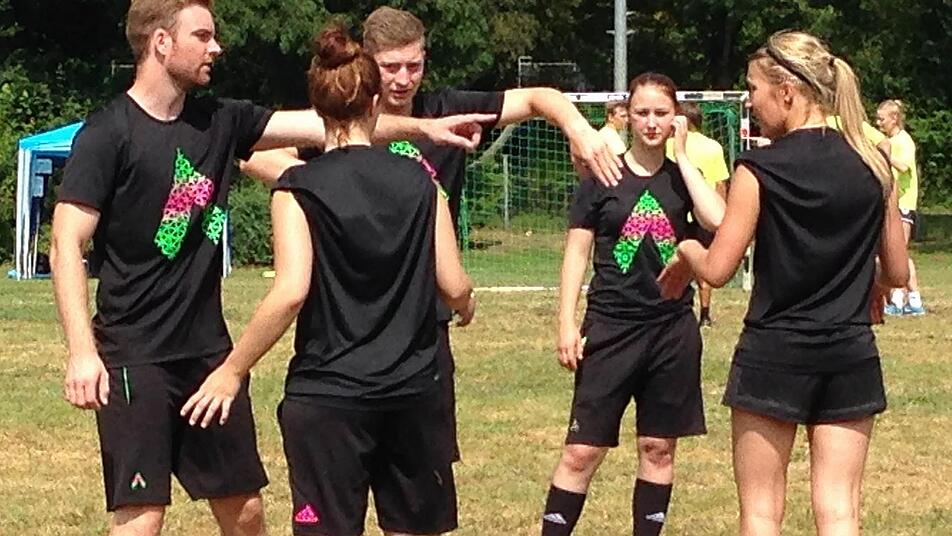 Obwohl die kleinen Geschicklichkeitsspiele abseits der Plätze Hochkonjunktur hatten, wurde auch der Sieger des 21. Forchheimer Quattroball-Turniers QuattFo in den vier etqablierten Mannschaftssportarten ermittelt. "Freies Bewegen im Raum" setzte sich nach je vier Partien Fuß-, Hand-, Basket- und Volleyball durch und verwies Seriensieger "Zirkulatoren" auf Rang 2. Im Vorjahr hatten die Erlanger das Duell noch für sich entschieden. Die Anfeuerung der persönlichen Cheerleaderin Jule scheinen geholfen zu haben. "Ich hatte das Kostüm von Fasching und da ich beim Fußball eh nicht mitspiele, habe ich mein Team so unterstützt", erzählte die 23-Jährige aus Leipzig.