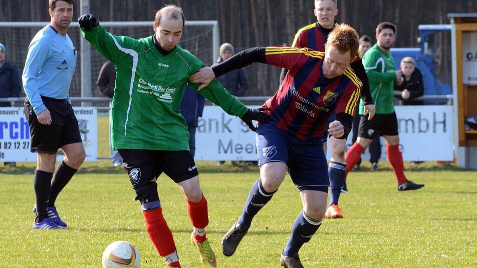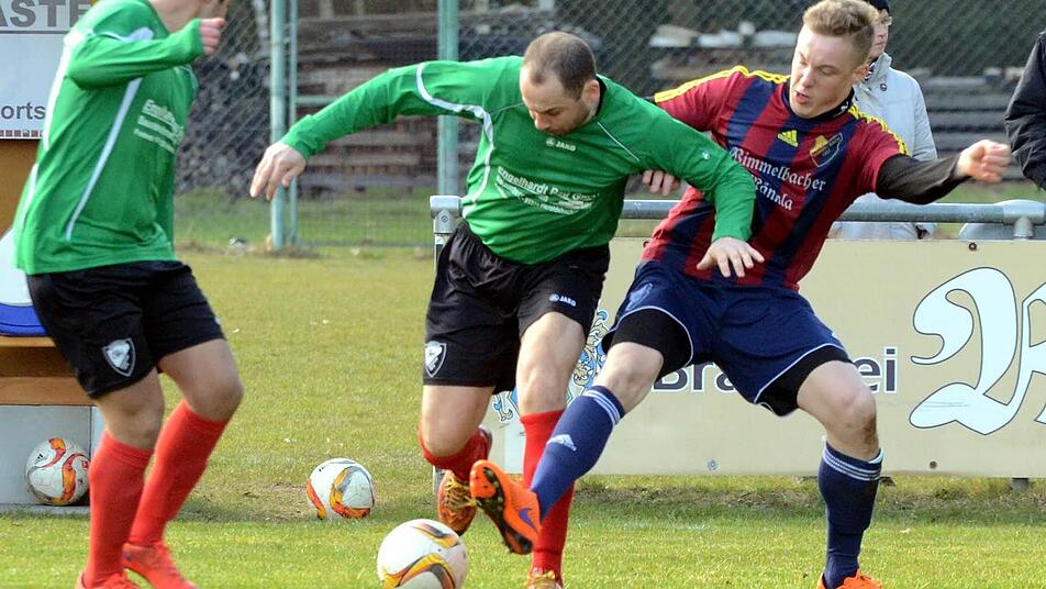 Es war ein typisches Nachbarschaftsderby, das glanzloses Gekicke bot und chancenarm dahin plätscherte. Kaum Kombinationsspiel, kaum Aufregung vor den Toren, dafür Verbissenheit zwischen den Strafräumen. Schnell wurde klar, zum Zunge schnalzen wird das nix. Schiedsrichter Armin Schmidt tat in der Anfangsviertelstunde gut daran, drei Gelbe Karten zu zücken. Gespielt wurde aber auch: Der trickreiche und wendige Matthias Pinzel setzte zu hoch an, als die Gästedefensive allzu leichtfertig den Ball verlor (11.). Schleicher zwang den gut aufgelegten Alexander Fediouk im Wimmelbacher Tor zu einer ersten Glanzparade (24). Damit hatten beide Reihen ihr Pulver bis zur Halbzeit schon verschossen.