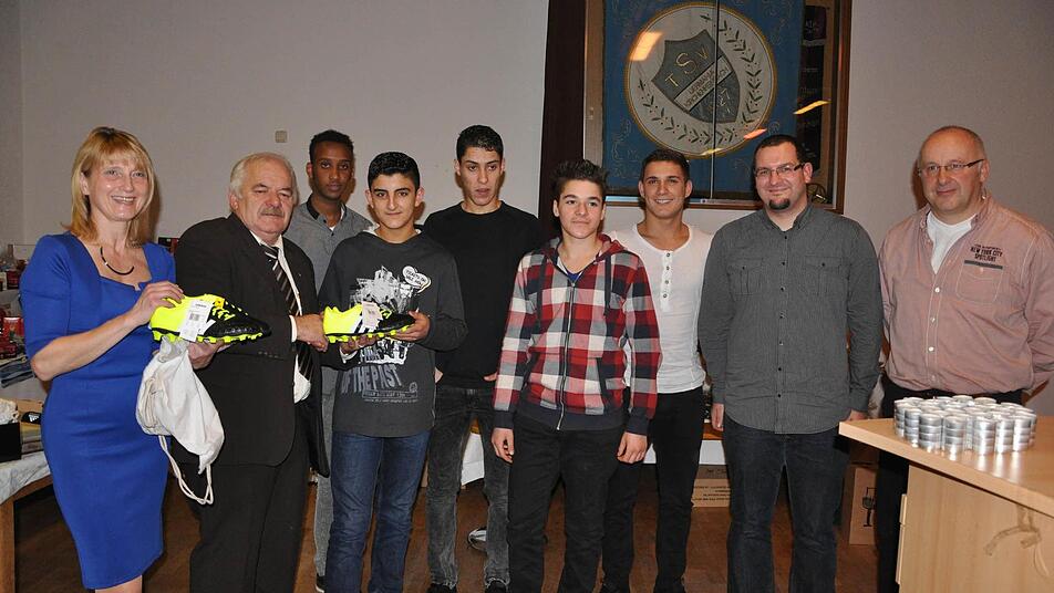 Sie übergaben an die in Nachbarschaft des Sportheimes untergebrachten Jugendlichen aus Kriegsländern mehrere Kartons mit nagelneuen Fußballschuhen, die von der Sozialstiftung des Bayerischen Fußballverbands innerhalb der Aktion "Fußballschuhe für Flüchtlinge" zur Verfügung gestellt wurden. Max Habermann stellte zudem fest, dass der TSV in vielerlei Hinsicht inzwischen ein Aushängeschild im Bezirk Mittelfranken und im Kreis Erlangen-Pegnitzgrund sei: "Der Gesamtverein ist sehr gut aufgestellt und hat sich den Erfolg verdient. Es macht mich stolz, dass mit eurer Silvia auch eine Vertreterin meiner Vereine vor kurzem den Ehrenamtspreis in Bayern gewann.