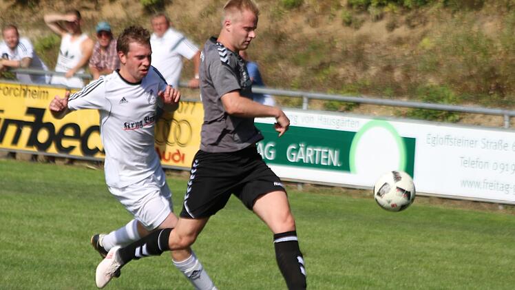 DJK Weingarts - SV Gößweinstein 0:5"Am besten wir tragen ab sofort alle unsere Heimspiele in Maigisch aus", scherzte Gößweinsteins Torwart Tobias Krug nach der Partie. Wenige Wochen nach dem gewonnenen Aufstiegsspiel auf dem neutralen Platz in Weingarts gewann sein Team auch das Auftaktderby gegen die DJK. Schon allein die Tatsache, dass Gößweinstein in Weingarts siegte, wäre eine Überraschung gewesen. Dass sie dies mit einem glatten 5:0 tun, sprengte alle Erwartungen. "Im Traum hätte ich nicht an so ein Ergebnis gedacht", sagte DJK-Trainer Arne Schmidt. "Dass die ersten drei Schüsse von Gößweinstein drin waren, war natürlich bitter."