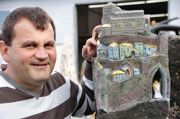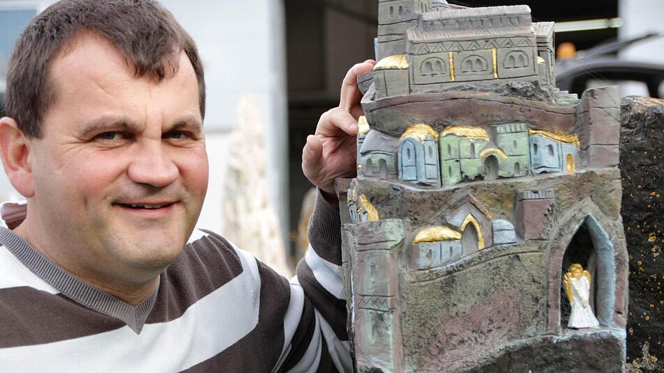 Ständig sucht er nach neuen Formen und Figuren. "Hier haben wir einen Stein mit dem Tempel von Jerusalem auf der Spitze gestaltet, den man von allen Seiten anschauen kann", erzählt Zenk.