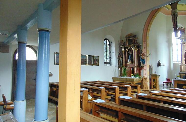 Um die Statik der aufgrund vom Boden aufziehenden Feuchtigkeit leicht morsch gewordenen Säule zu gewährleisten, wurde vor zwei Jahren ein neuer dicker Holzbalken nach den Maßangaben des Statikers unter der Empore eingebracht. Das hält und tut den Gottesdiensten keinen Abbruch. Überhaupt, dass die Kirche St. Ägidius in Stöckach neu erstrahlt, dafür hat der frühere Kirchenpfleger Willi Singer mit Herzblut gearbeitet und auch selbst Hand an den Pinsel gelegt.