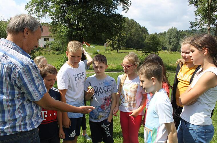 Durch den Wald liefen die Schüler und die beiden Lehrer zum Pavillon, dann Richtung Friedhof und am Fuß des Kulich entlang zurück zum See und dann zur Schule. Harro Preiss berichtete beim Laufen über technische Daten, erklärte den Kindern aber auch die Geschichte von Heiligenstadt. "Zum Beispiel am Judenfriedhof über das jüdische Leben in Heiligenstadt. Eigentlich war es eine Exkursion mit Meteorit", berichtet Preiss lachend.