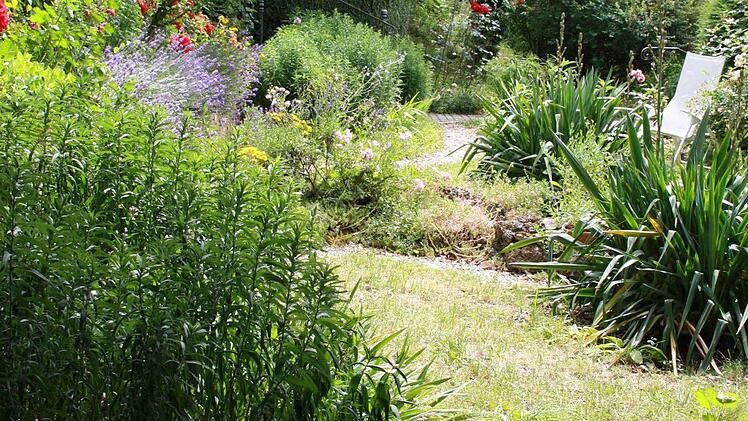 Doch bis der Garten zu dem wilden Artenparadies wurde, das er heute ist, bereitete er den Hörlins zunächst einmal viel Arbeit. "Nach einem guten Jahr war das Grundkonzept erkennbar", berichtet Rainer Hörlin, "im Laufe der Zeit haben wir den Garten immer weiter verfeinert und ergänzt." Um den trostlosen Tümpel, den ihnen der Vorbesitzer hinterlassen hatte, schlängelt sich nun ein geschotterter Weg neben in allen Farben blühenden Gewächsen.