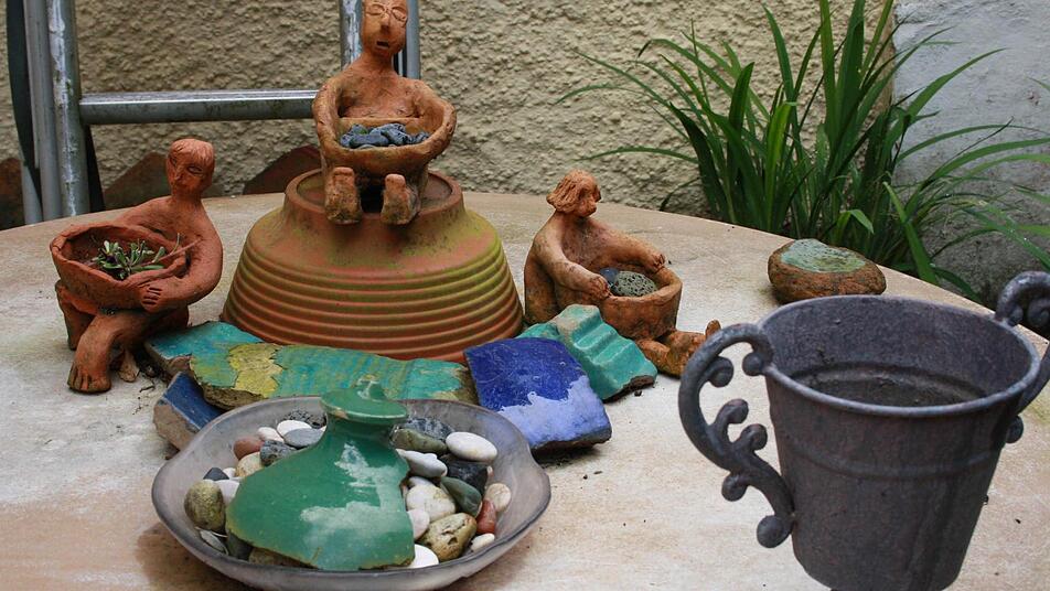 Eine Ecke ist mit selbst getöpferten Figuren verziert: Werke früherer Schüler des pensionierten Volksschullehrers.