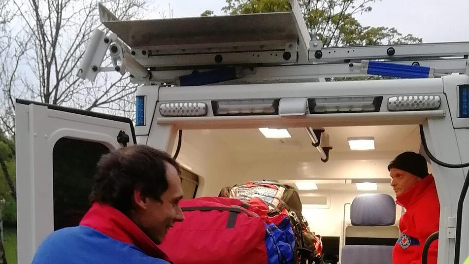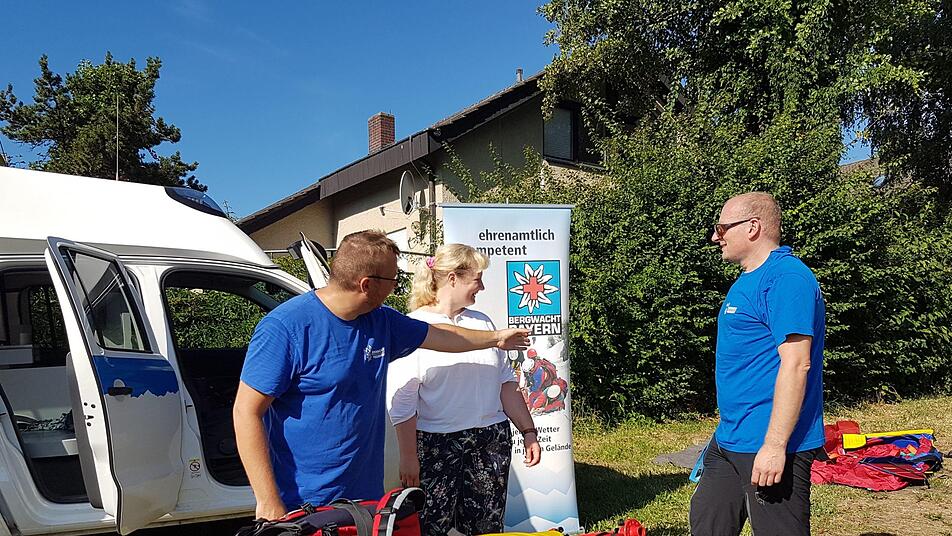 Bastian Haas und Thomas Obeth von der Bergwacht zeigten Susanne Behlert ihre wichtigsten Utensilien: Gebirgstrage und Bergsack. "Damit transportieren wir die Verletzten ab", erklärte Haas. Bei einem Hubschraubereinsatz werde nur der Bergsack benutzt. Bastian Haas verriet: "Ich bin in die Bergwacht quasi hineingeboren, denn meine Eltern nahmen mich von klein auf mit." Mit 16 trat er selbst ein, mit 18 absolvierte er die Prüfung zum Bergrettungsmann und mit 19 begann er den Lehrgang zum Luftretter. "Man investiert viel Zeit und Herzblut und bekommt schon mal das eine oder andere graue Haar", gab er zu. Wenn es mal zuviel wird, schaut er sich die Dankesschreiben von Geretteten an und macht mit neuer Energie weiter.