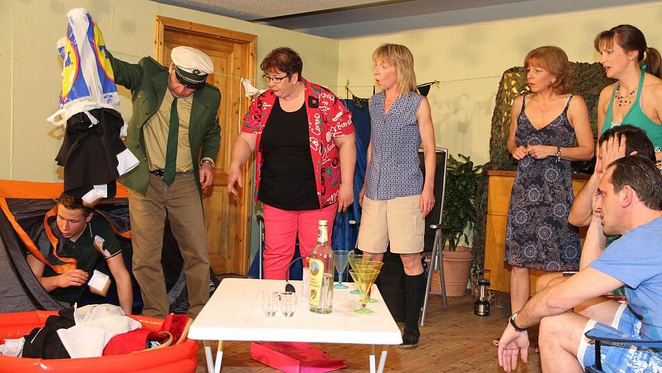 Ein etwas trotteliger Polizist Das diesjährige Lustspiel in drei Akten "Mit Schlafsack und Kamillentee oder Der Traumurlaub" handelte von zwei reiselustigen Damen, deren Männer daran setzen, eine teuere Aida- Kreuzfahrt zu verhindern.