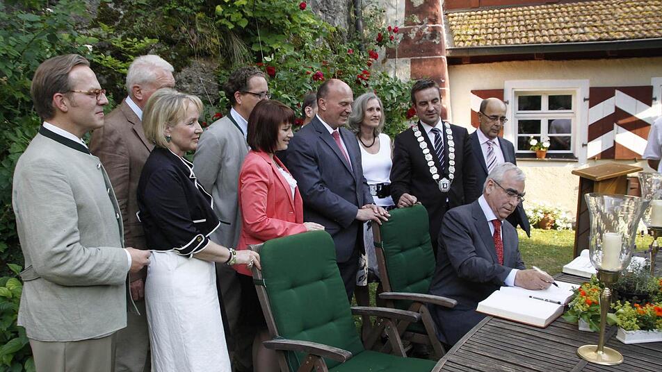 Der ehemalige Bundesfinanzminister und heutige CSU-Ehrenvorsitzenden Theo Waigel war nach Egloffstein gekommen. Gemeinderäte, Rathausmitarbeiter, Kandidaten für die Bezirks- und Landtagswahlen und die Mitglieder machten dem CSU-Granden im Hof der Burg Egloffstein ihre Aufwartung.