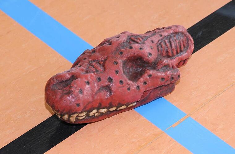 "Jugg" - der Spielball ist ein Kunststoffhundeschädel - in der Mitte des Spielfeldes zu erobern und ins Platzierfeld der gegnerischen Mannschaft zu stecken.