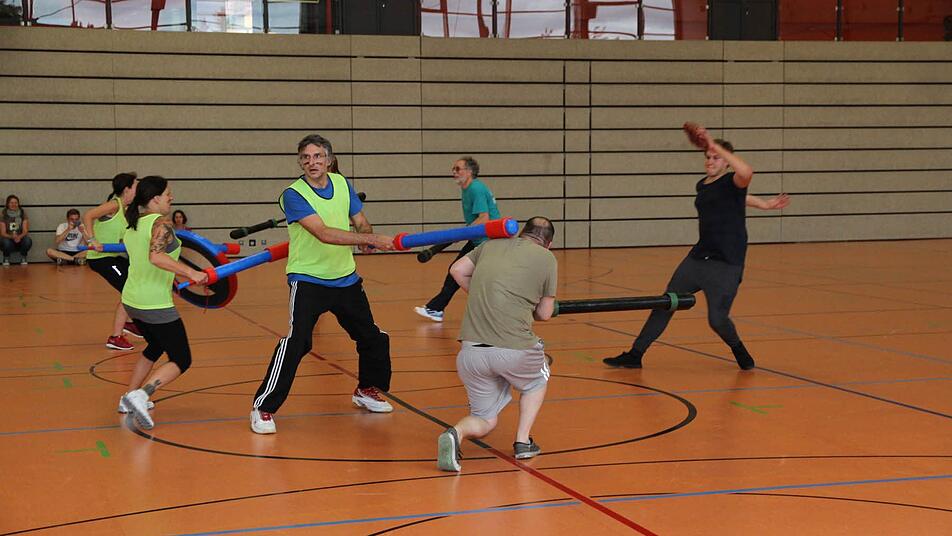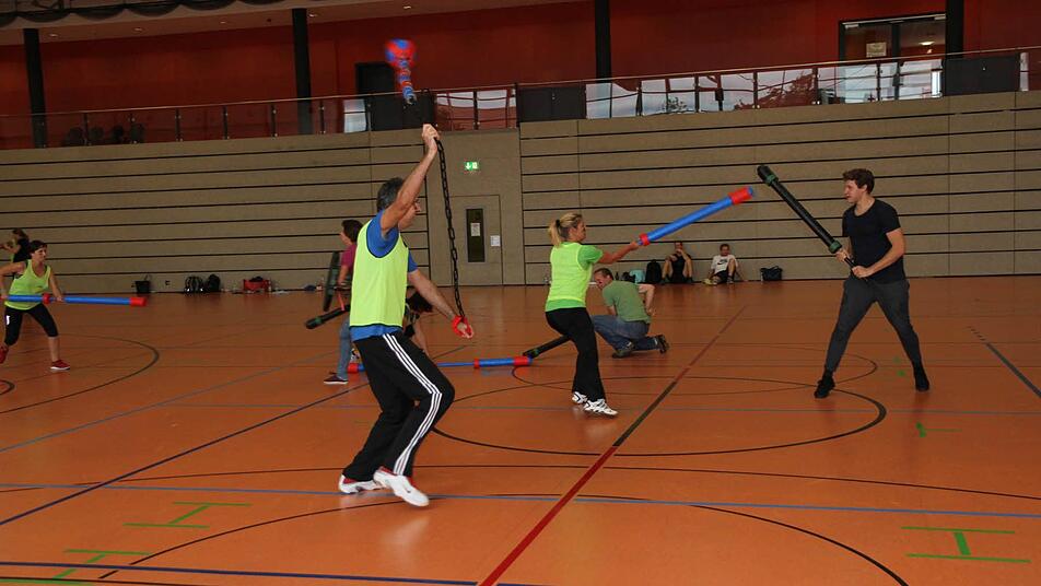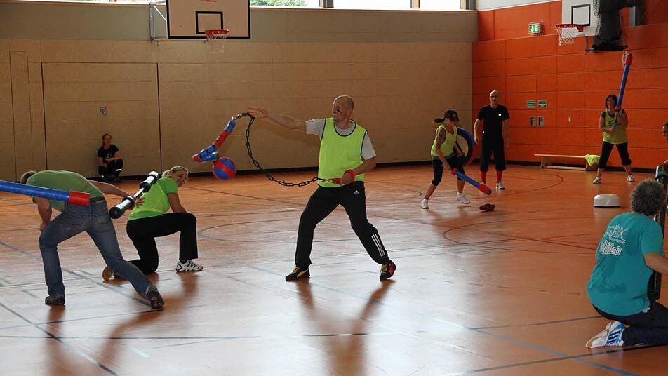 Gleich loslegen wird Diplom-Sozialpädagoge Michael Schulz, Jugendsozialarbeiter an der Grund- und Mittelschule Ebermannstadt: Für Schüler der 5. bis 8. Klasse hat er bereits eine "AG Juggern" eingerichtet und holte sich beim Workshop letzte Anregungen vom Profi. "Es ist einfach eine gigantische Geschichte zum Thema Aggressionsabbau", ist er begeistert.