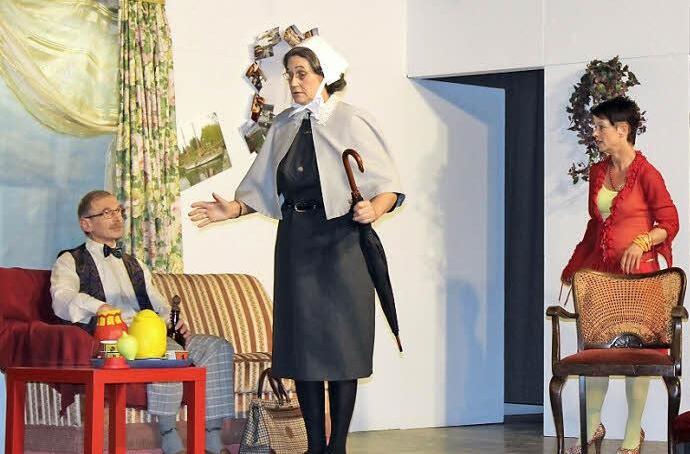Dabei fängt das Stück durchaus ernst an, als die 90 Jahre alte Tante Witha Gotthold (Barbara Wagner) nach einem Sturz von der Leiter in das Krankenhaus gebracht werden muss. Dieser Umstand weckt bei ihrer Nichte Edith (Alexandra Fogle-Chatzigeorgion) und ihrem Mann Dietrich Buschmeier (Horst Vogel), einem mit allen Wassern gewaschenen Steueranwalt, Vorfreude auf eine baldige Erbschaft.