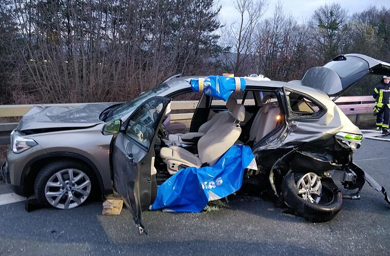 Durch die Wucht des Aufpralls flogen Trümmerteile durch die Luft und trafen ein drittes Fahrzeug auf der Überholspur sowie zwei weitere auf der Gegenspur der A73. Ein sechster Wagen wurde ebenfalls beschädigt.