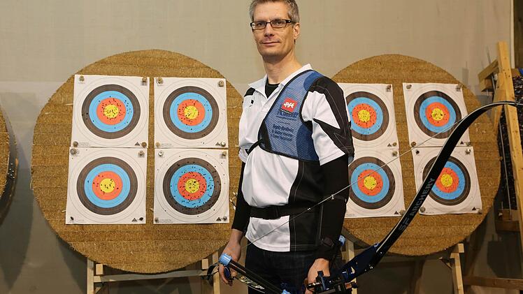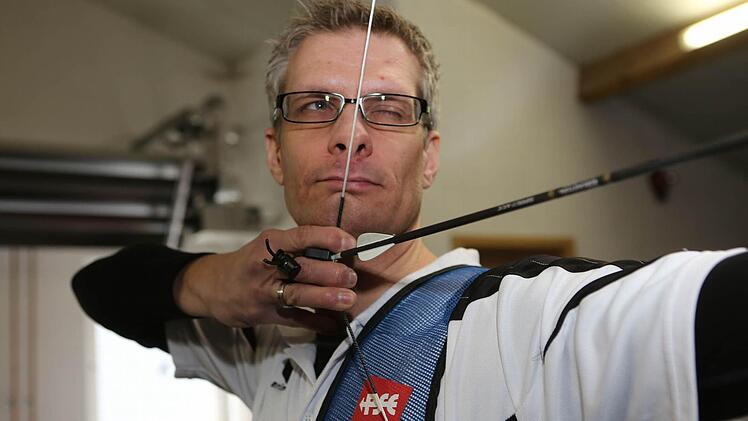 Der Daumen liegt unter dem Kinn, drei Finger spannen die Sehne, bis sie Uwe Kirschsteins Nasenspitze berührt. Als das gelbe Zentrum der Zielscheibe - das Gold - im Fadenkreuz liegt, lässt er los. Der Pfeil saust durch die Luft.