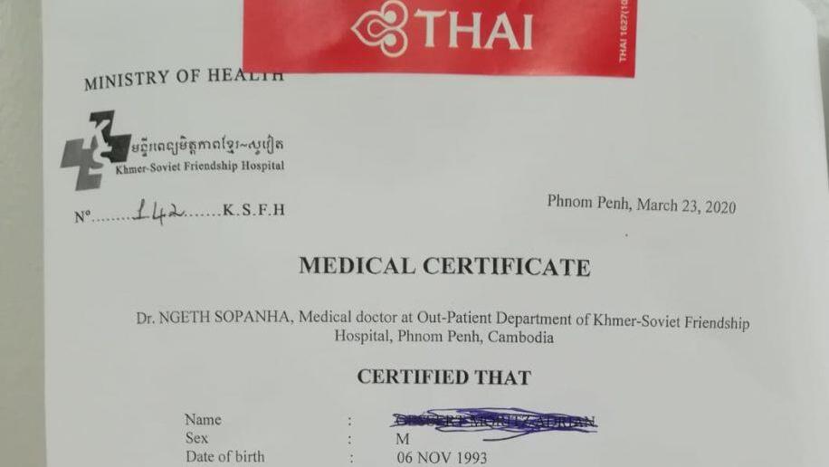Am Rückreisetag durften sie nicht an Bord, da sie bestimmte Dokumente nicht hatten. Die Urlauberin aus Heiligenstadt erzählt: "Wir hatten nicht erfahren, dass die nötig waren. Zum Beispiel sollten wir eine Versicherung nachweisen, wer zahlt, falls wir Corona bekommen. Und wir sollten eine Bestätigung vom Arzt vorlegen, dass wir noch nicht erkrankt sind." Die beiden Gestrandeten besorgten sich am Montag früh die Dokumente und fuhren wieder zum Schalter von Thai Airways. Mittlerweile hatten sie auch den Rückflug von Bangkok aus auf Mittwoch umgebucht. Doch in Phnom Penh teilte ihnen ein Angestellter der Fluggesellschaft mit, dass sich die Vorschrift geändert habe und sie jetzt von einer Klinik ein Attest benötigen über einen Labortest, deshalb könnten sie nicht nach Bangkok mitfliegen.