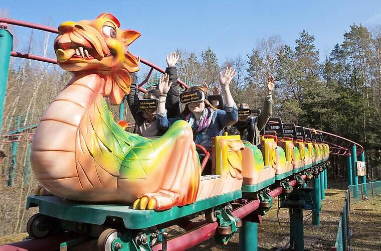 Die neue Virtual-Reality-Achterbahn im Freizeitpark Schloss Thurn soll die Besucher in fremde Welten entführen.