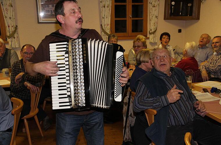 Ein Lied über eine Kartoffel Kramer hatte Liedblätter dabei, die er gemeinsam mit seinen Gästen einübt und anschließend sang.