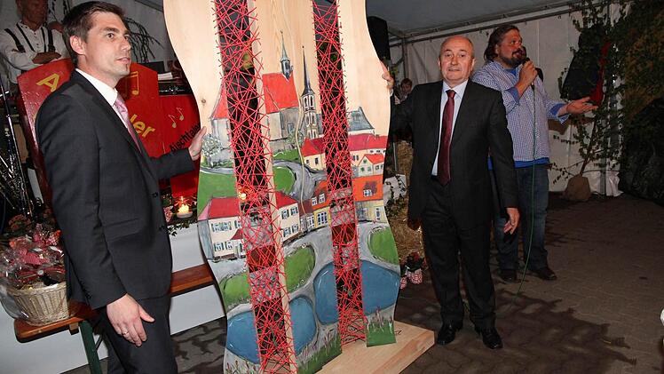 Und was wäre eine Feier ohne Geschenke? Im Hallerndorfer Ge-meinderat hatten sich die Räte lange beraten und am Ende beim Schlammersdorfer Korbflechterbetrieb Backof eine zwei Meter große Skulptur in Auftrag gegeben, die aus zwei Teilen besteht und die man wie ein Puzzle zusammenfügen kann. Eine davon verbleibt im Hallerndorfer Rathaus, die andere soll in Drena an die Partnergemeinde erinnern.