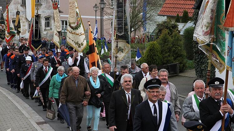 Zuvor war man vom Rathaus hinauf zur St. Sebastiankirche gezogen, begleitet von den Fahnenabordnungen der Vereine aus der ganzen Gemeinde. Nach dem Gottesdienst legten die Bürgermeister Gunselmann und Bortolotti gemeinsam als Zeichen der Ehrfurcht, des Gedenkens und des Dankes einen Kranz am Ehrenmal nieder.