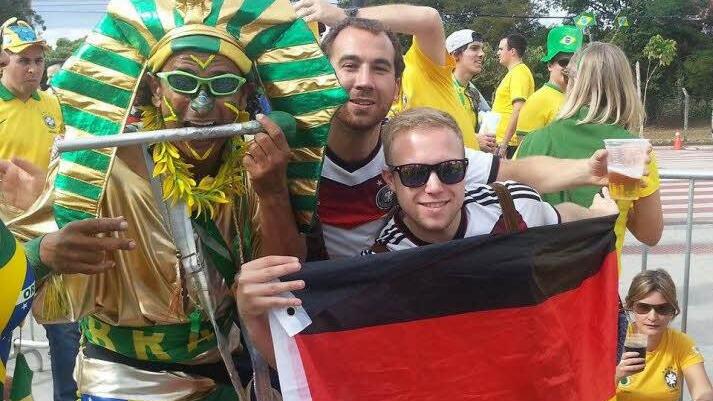 Erst waren wir die einzigen Deutschen unter vielen brasilianischen Fans. Wir mussten mehrere Interviews mit verschiedenen TV-Sendern geben.