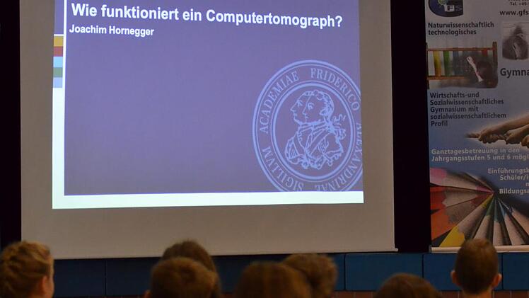 Für Professor Hornegger war es etwas Besonderes, nach Ebermannstadt zu kommen an diese Schule zu kommen. Er ist im Landkreis Forchheim aufgewachsen und hat selbst sein Abitur am Gymnasium in "Ebs" absolviert. Nach einem Studium der Informatik und Mathematik war er Entwicklungsingenieur bei Siemens Medical Solutions und anschließend Professor an der Technischen Fakultät der Friedrich-Alexander-Universität Erlangen Nürnberg (FAU).