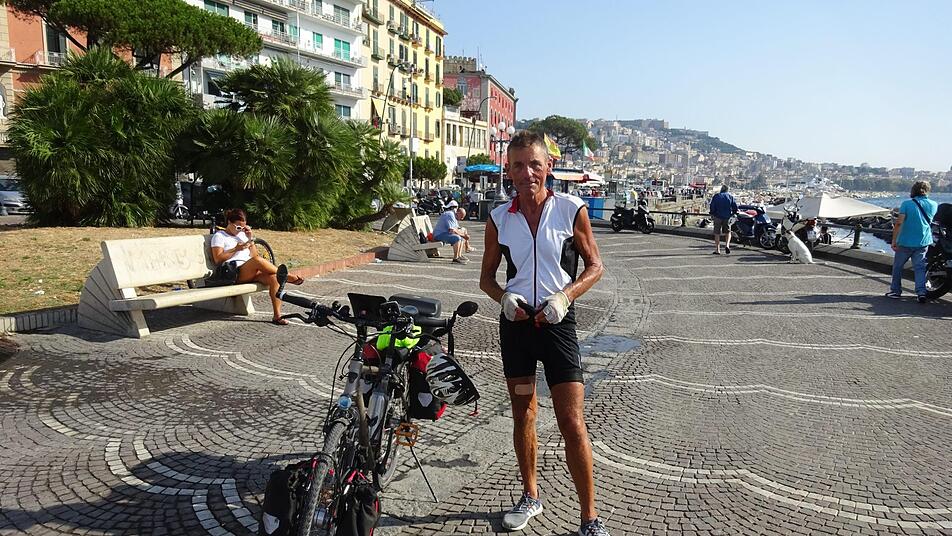 Ganz ohne Fernreise ging es für ihn dann doch nicht. Anfang August schwang er sich auf den Sattel und fuhr von Ebermannstadt aus 2600 Kilometer nach Palermo auf Sizilien. Die Hygienevorschriften in Italien waren streng. Maskenpflicht herrschte selbst im Freien.
