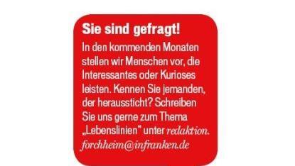 In den kommenden Monaten stellen wir Menschen vor, die Interessantes oder Kurioses leisten. Kennen Sie jemanden, der heraussticht? Schreiben Sie uns gerne zum Thema "Lebenslinien" unter redaktion.forchheim@ infranken.de