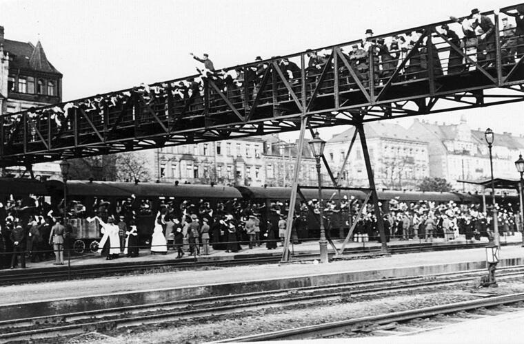 August an alle deutschen "Jünglinge, über welche eine endgültige Entscheidung bezüglich ihrer Militärpflicht noch nicht getroffen ist", die Aufforderung, "sich sofort im städtischen Wehramte zur Stammrolle zu melden". Die beiden christlichen Konfessionen stützten den Staat in seiner Kriegsbereitschaft.