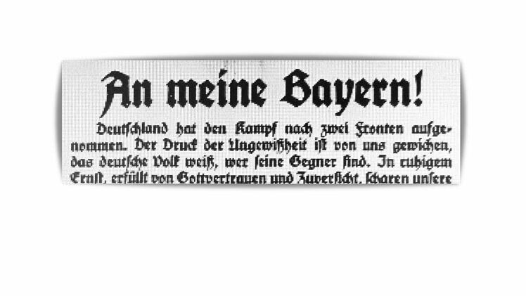 Das waren keine hohlen Phrasen, sondern tatsächlich die Meinung vieler Zeitgenossen. Auf dem landesweit als Plakat verbreiteten Aufruf "An meine Bayern!" sprach König Ludwig III. von einem "uns frevelhaft aufgedrungenen Krieg".