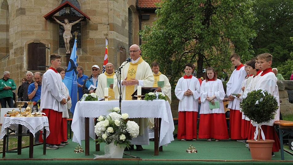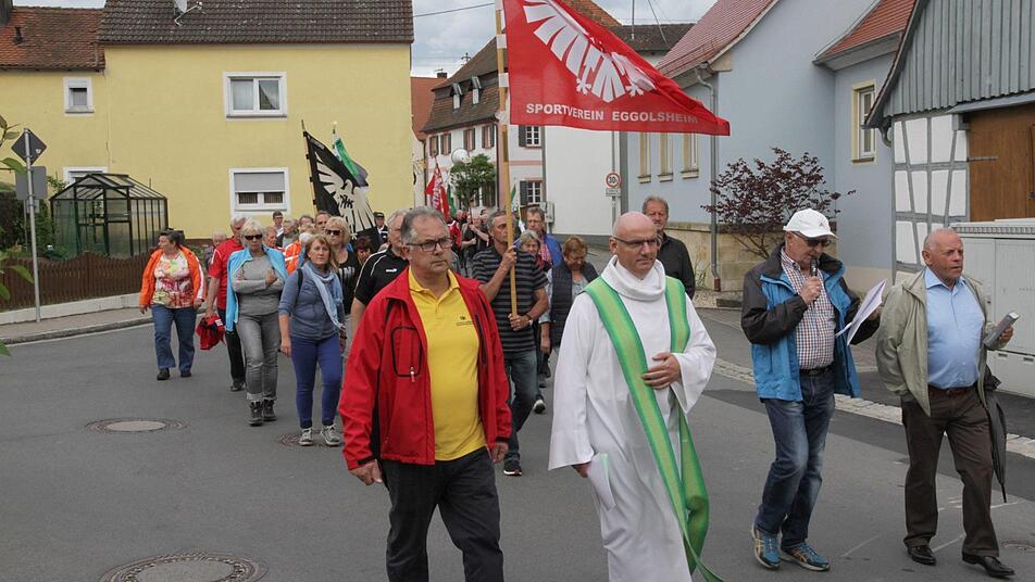 "Menschen, die nicht mehr entscheiden, haben schon aufgehört zu leben", warnte Hetzel. "Durch das aktive Entscheiden gestalten wir und übernehmen Verantwortung", so Hetzel. Er hielt den feierlichen Gottesdienst nach der etwa drei Kilometer langen Wegstrecke vom Hallerndorfer Sportheim hinauf zum Kreuzberg direkt vor der alten Wallfahrtskirche "Heilig Kreuz" gemeinsam mit Pfarrer Matthias Steffel und Ehrenpräses Hans Wich. Die Messe wurde von der Kirchenband "Spirit of Life" aus der Pfarrei St. Josef in Niederndorf musikalisch umrahmt. Schon bevor der bunte Tross unter den Klängen der Aischtaler Musikanten und Vorbeter Alfons Nützel loszog, gab es bereits etwas zu wählen. Die Teilnehmer durften aus drei Möglichkeiten entscheiden, für welchen Zweck die Kollekte verwendet wird. Mit großer Mehrheit wurde ein Projekt gegen den Hunger in Afrika der "Aktion Deutschland Hilft" gewählt, verkündete der DJK-Diözesanverbandsvorsitzende Matthias Distler. "Die Sportlerwallfahrt ist immer etwas Besonderes", findet der Vorsitzende der DJK Kersbach. "Neben dem Geist werden im Anschluss auch Leib und Seele gestärkt", erklärt er in Anspielung auf die Einkehr auf den Bierkellern unterhalb der Kreuzbergkirche nach dem Gottesdienst. Kassenprüfer Manfred Schneider kann sich nicht erinnern, dass die DJK Kersbach einmal eine DJK-Wallfahrt verpasst hätte: "Wir waren immer dabei". Er ist ein "Fan" des Geistlichen Beirates Helmut Hetzel. "Seine Art gefällt mir sehr, er denkt modern und geht auf die Menschen zu", erklärt Schneider.