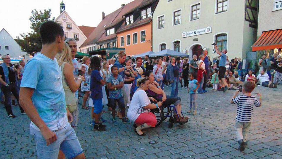 Kinder tanzen vor der Bühne, auch die Erwachsenen wippen im Rhythmus mit - die Stimmung auf dem Gräfenberger Marktplatz ist schon mit der ersten Band mitreißend gut, fast als wolle man einen Rekord knacken. 800 Leute besuchten im vergangen Jahr das Open-Mind-Festival, bestimmt 600 Leute sind es am Samstagnachmittag. "Und wir sind erst bei der zweiten Band", sagt Michael Strößenreuther, der zum Organisationsteam gehört.