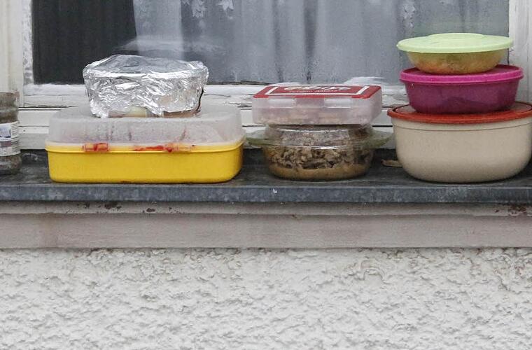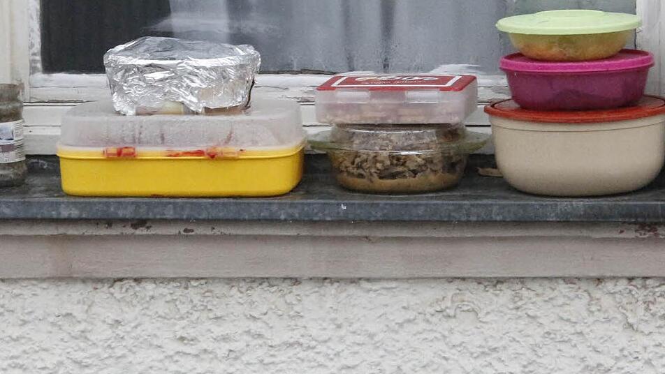 Doch die Kälte hat auch ihre guten Seiten. Bei solchen Temperaturen kann man sich den Kühlschrank sparen. Man stellt die Sachen einfach aufs bzw. ins Fensterbrett(la).