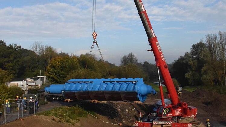 Um kurz nach 9 Uhr startete die Aktion. Die Arbeiter vor Ort machten einen tollen Job und keine zwei Stunden später war alles - wie geplant - an Ort und Stelle. Doch warum wird eine Wasserkraftschnecke zur Stromerzeugung verwendet? Kiver erklärt: "Damit können die zusätzlichen Wassermengen sinnvoll zur Stromproduktion genutzt werden.