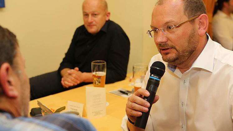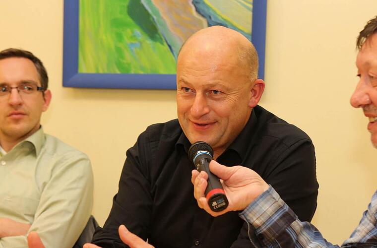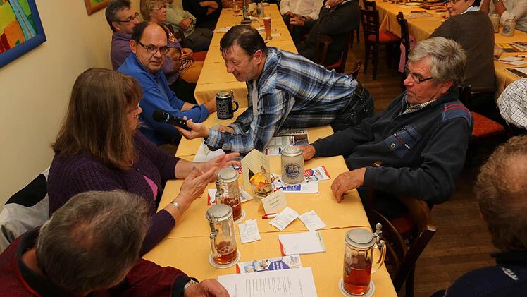 Auf "Bio-Rinder" hat sich Thorsten Bastian spezialisiert. Ein halbes Jahr stehen seine zwölf Kühe plus Kälber draußen auf der Weide. Ob er davon leben kann, will FT-Redakteur Josef Hofbauer wissen. "Nein. Ich arbeite bei einer großen deutschen Firma in Erlangen", antwortet Bastian und die Zuhörer lachen, weil sie wissen wer gemeint ist: Siemens. "Das kann man ruhig sagen, das ist nichts Ehrenrühriges", findet der langjährige Journalist und Moderator dieses Abends.