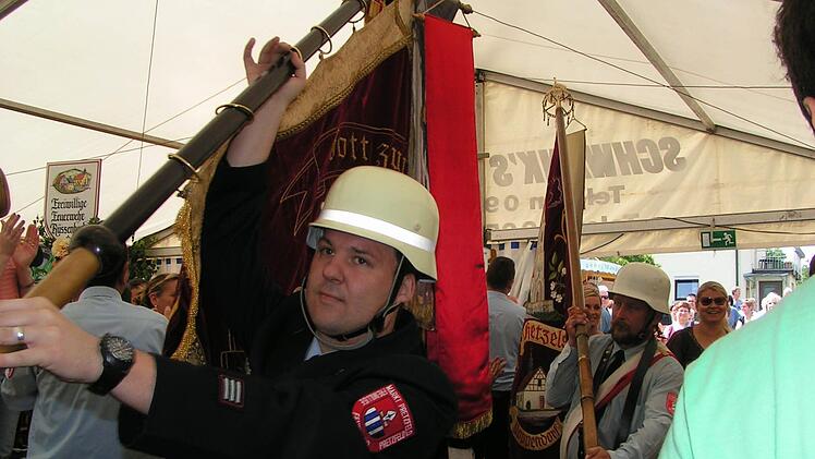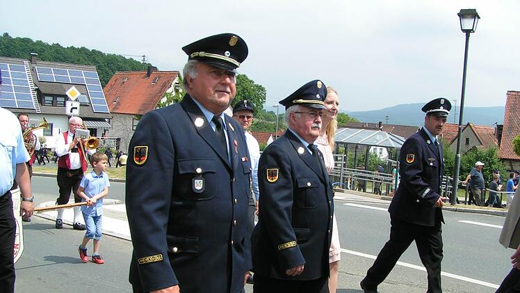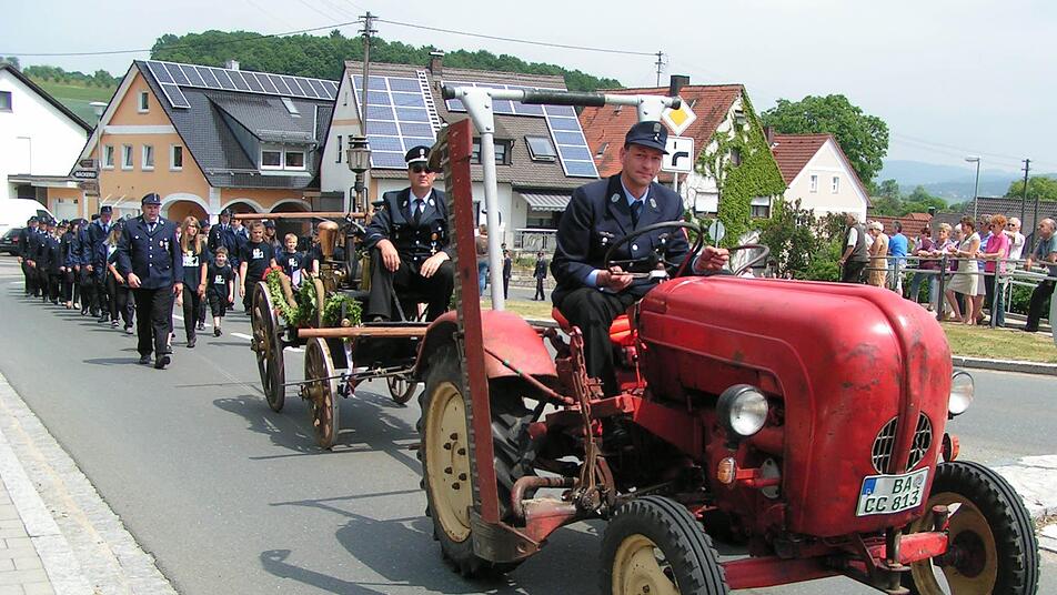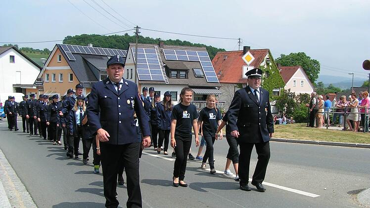 Mit den Blaskapellen aus Weilersbach und Pinzberg, den beiden Feuerwehrkapellen Forchheim und Neuses sowie historischen Fahrzeugen der Weilersbacher und Reuther Feuerwehr marschierten die 30 Feuerwehr-, Trachten-, Schützen- und Ortsvereine durch die mit vielen Zuschauern gesäumten Straßen zum Festzelt.