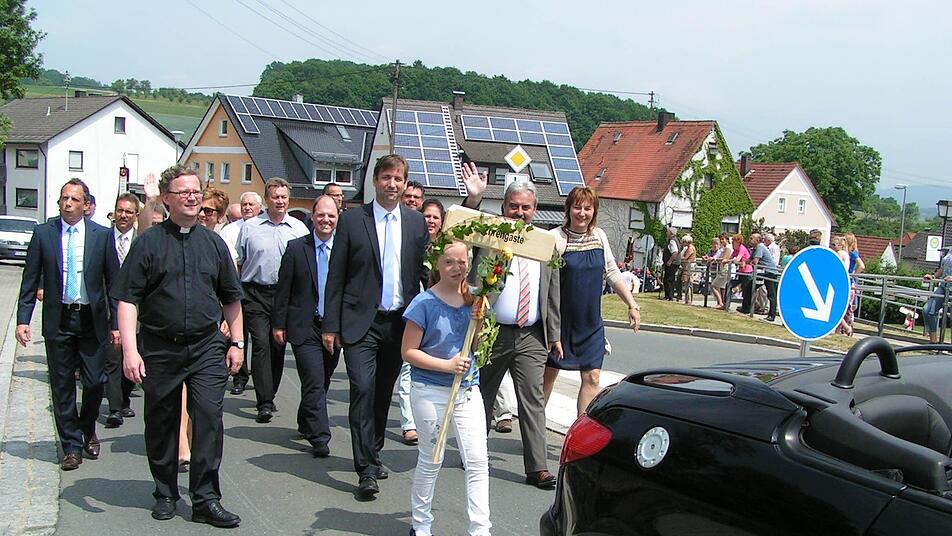 Dort standen die Weilersbacher Spalier für ihre Gäste, bevor der immer wieder beeindruckende Fahneneinmarsch folgte.