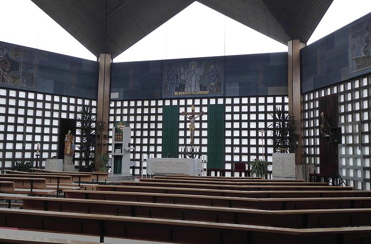 Nicht viel bleibt von dem, was vielen Gläubigen in den letzten 45 Jahren so vertraut war. Vor allem die Glas-Waben-Felder in der Kirche und im Pfarrsaal. Doch die haben sich in den Jahrzehnten so massiv gelockert, dass sie entfernt werden müssen. Ersetzt werden sollen diese durch den Einbau von Pfosten-Riegel-Fassadenteilen mit einer undurchsichtigen Dreifachverglasung. Was jedoch auf einige Bedenken stieß. "Zuviel Glas" war man der Meinung. Es wäre zu überlegen, ob man zwischen der Verglasung Mauerwerk einziehen könnte.