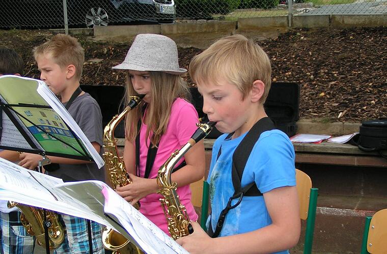 Wahrscheinlich hätte es keine bessere Werbung für das Jeki-Projekt geben als ihr gemeinsamer Auftritt. Natürlich, die Kinder waren aufgeregt litten ein wenig an Lampenfieber. Doch das Nervenflattern schien wie weggeflogen, als die 27 Mädchen und Buben ihre Gitarren, Querflöten, Hörner, Saxophone und Posaunen in die Hand nahmen.