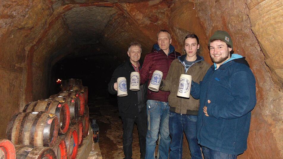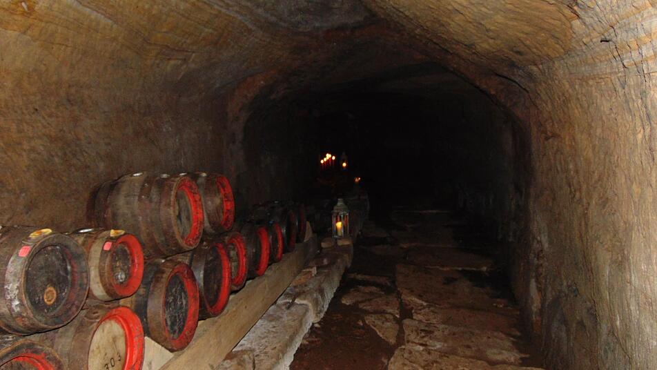 Vor mehr als einem halben Jahrtausend ist der Keller zur Biereinlagerung in die weiche Sandsteinschicht am Weinberg geschlagen worden.