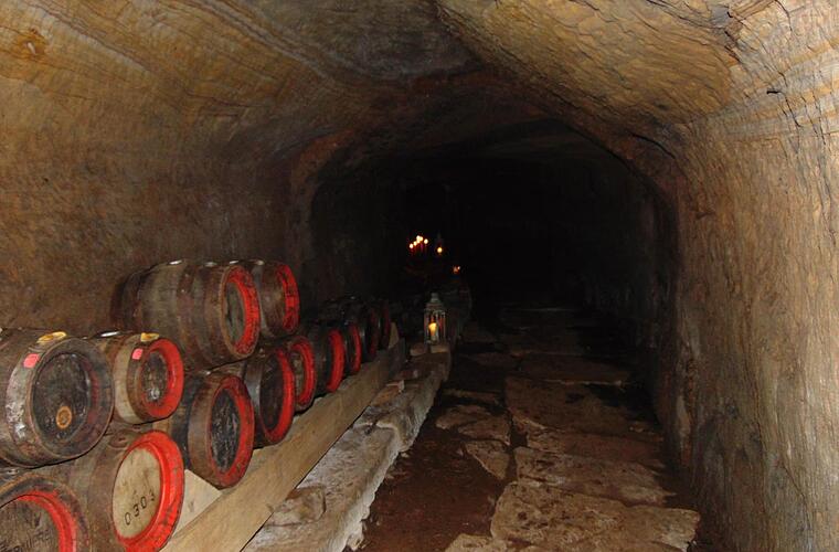 "Nicht jede Biersorte ist dazu geeignet", erklärt Urban Winkler in dem dunklen Weinbergkeller, wo passend zur Einlagerungsfeier Mönchsgesänge erschallen und der Weg mit Kerzenlicht ausgeleuchtet ist. "Prädestiniert sind kräftige Biere", weiß Winkler.