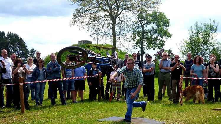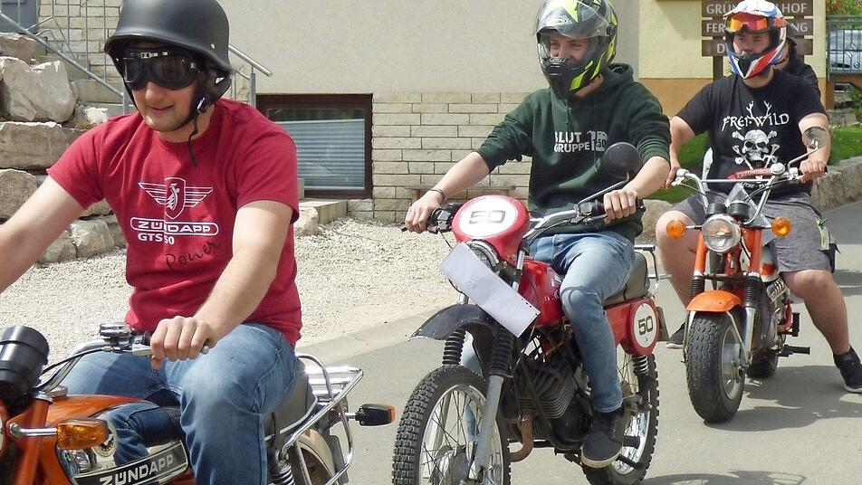 Er musste sich unter anderem Jürgen Bezold aus Ebermannstadt, einem ehemaligen Gösseldorfer, geschlagen geben. Dritter in dieser sicher nicht ganz ernst zu nehmenden Disziplin wurde Martin Wunder aus Höfen bei Hollfeld. Ein Trost blieb Jonas Bezold jedoch: Er hatte mit seiner original und voll funktionierenden Ardi mit Baujahr 1932 wieder das älteste Motorrad für die Rundfahrt und Motorradschau am Start.