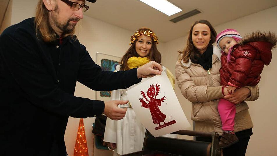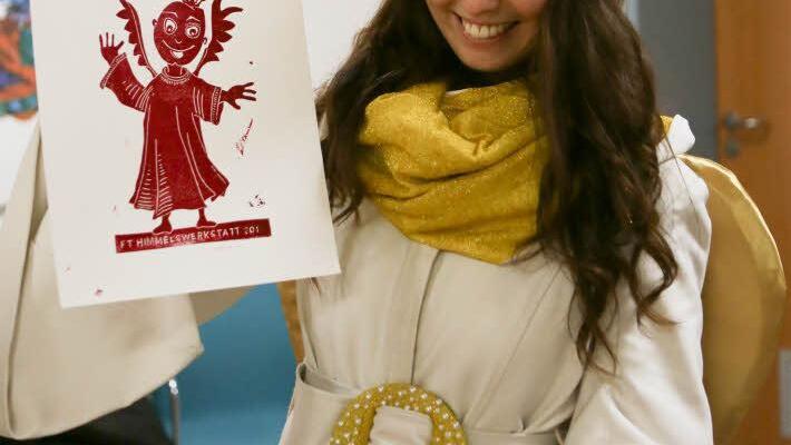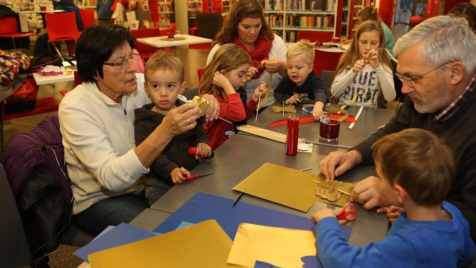 Ein paar Meter weiter in der Stadtbücherei präsentiert die kleine Anna Schneider einen prächtigen Papierengel: "Passt das so?" Die Siebenjährige erntet Lob von allen Seiten und erzählt auf Nachfrage gerne, wie sie ihn gebastelt hat: "Also, erst habe ich einen langen Streifen mit der Nadel durchgestochen und auf einen Spieß aufgefädelt. Dann habe ich Flügel, Gesicht und Haare aufgemalt und ausgeschnitten. Und zum Schluss alles zusammengeklebt."