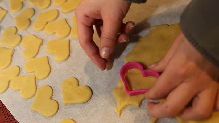Mit einem Ausstecher in Herz-Form beugt sich Alexandra Nützel mit ihren dunklen Engelslocken über den ausgerollten Butterplätzchen-Teig. Ein Herz nach dem anderen bringt sie zum Vorschein. Ist sie etwa verliebt? Schließlich gibt es noch andere Formen - Sterne, Mond, Auto -, welche einige Kinder neben ihr eifrig benutzen. "Nein, nein", prustet die 15-Jährige, "das ist nur so am einfachsten."