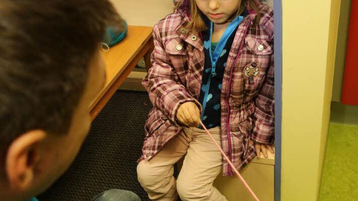 Als kein anderes Kind den Platz beim Doktor beansprucht, schleppt Jonas einen großen Fisch an und setzt sich neben ihm. Jörg Vollmuth lächelt. "Hast Du noch einen Patienten? Na dann schauen wir mal, was dem Fisch fehlt."